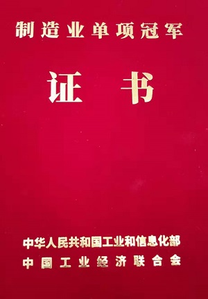 2019年11月27日,獲得工業和信息化部第四批制造業單項冠軍企業(產品)