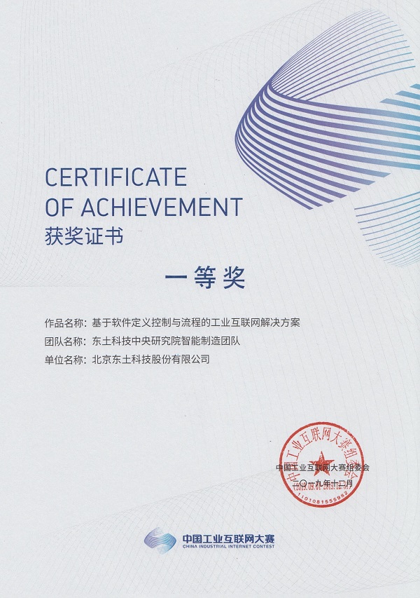 2019年12月3日,獲得由工業和信息化部、浙江省人民政府指導的首屆中國工業互聯網大賽一等獎