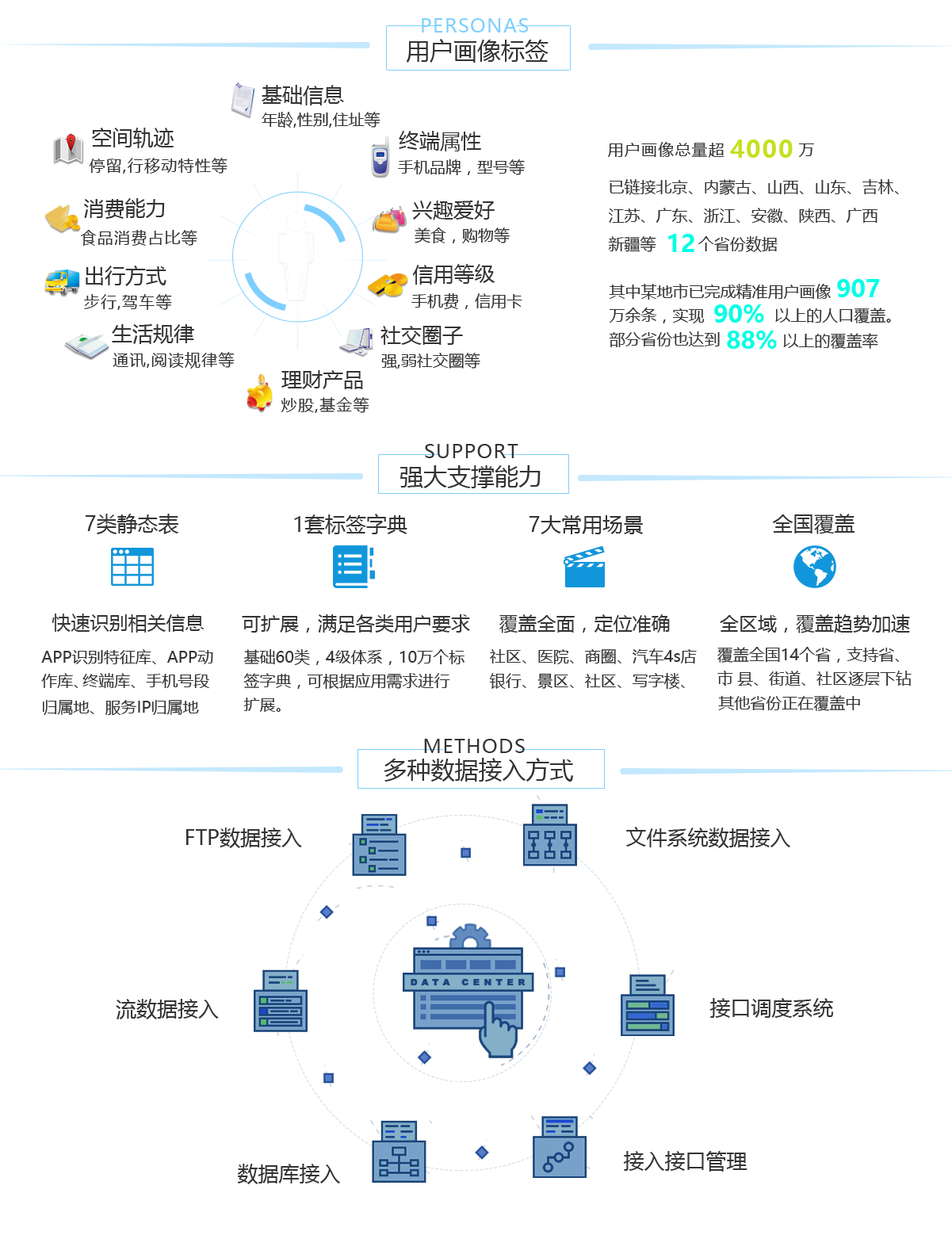 利用大數(shù)據(jù)封裝技術,以開放接口和標準化服務的形式,對外提供數(shù)據(jù)運營服務,通過對原始數(shù)據(jù)的二次加工和去隱私化,形成準確的用戶畫像數(shù)據(jù),在法律允許范圍內提供大數(shù)據(jù)價值變現(xiàn)等服務。