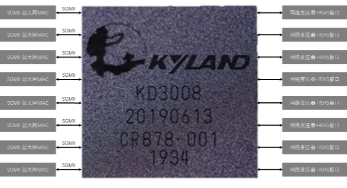 KD3008 GPHY芯片是高集成度自主可控芯片產(chǎn)品。芯片對外提供8個(gè)SGMII接口和2個(gè)QSGMII接口,支持10BASE-T、100BASE-TX、100BASE-FX和1000BASE-T業(yè)務(wù)。MAC接口支持SGMII應(yīng)用模式、QSGMII應(yīng)用模式。以太網(wǎng)接口支持自動(dòng)協(xié)商、半雙工和全雙工、自動(dòng)極性校準(zhǔn)。支持雙層內(nèi)部環(huán)回測試,簡化系統(tǒng)級調(diào)測。