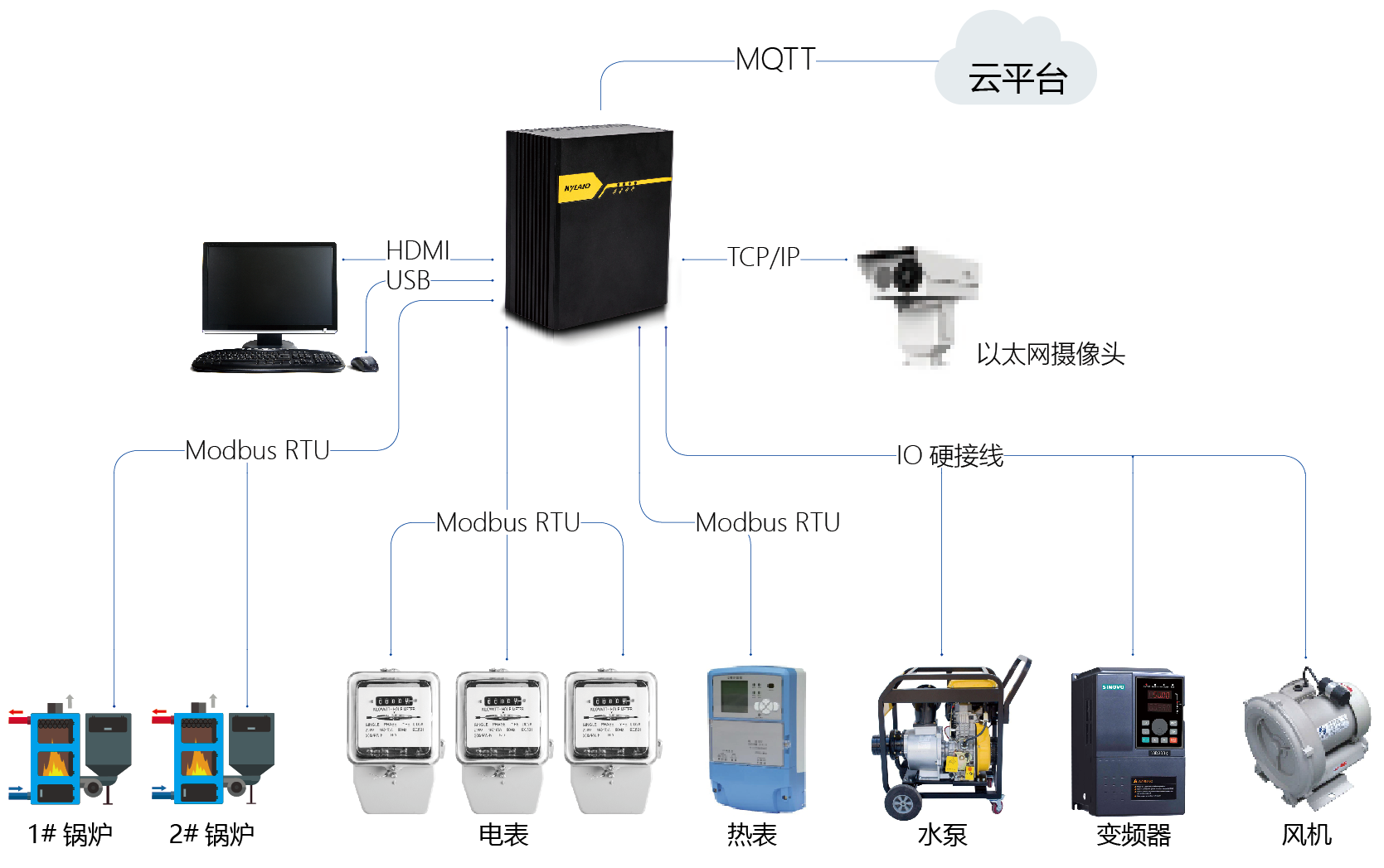 2. 現場往往會包含多種專用設備,這些設備有專用的控制器及HMI,控制層的主控制器受限于接口、協議往往不能很方便的連接這些專用控制器,導致監控層設備難以通過主控制器對整個系統進行監控,操作員經常需要操作分布在不同地方的多個HMI,使用非常不便。