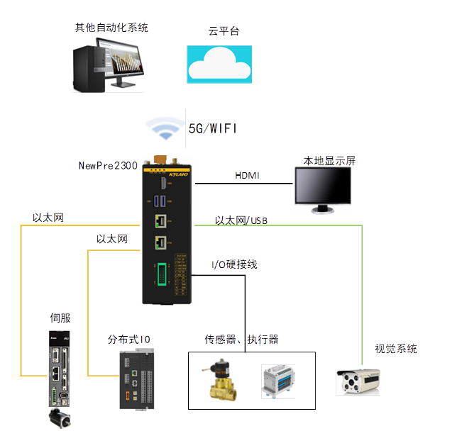 NewPre2300內置IEC61131-3實時控制內核及協議網關軟件,并提供圖形桌面系統,可集成如視頻編解碼、邊緣小型數據庫等多種業務軟件,成為工業現場一站式邊緣節點。