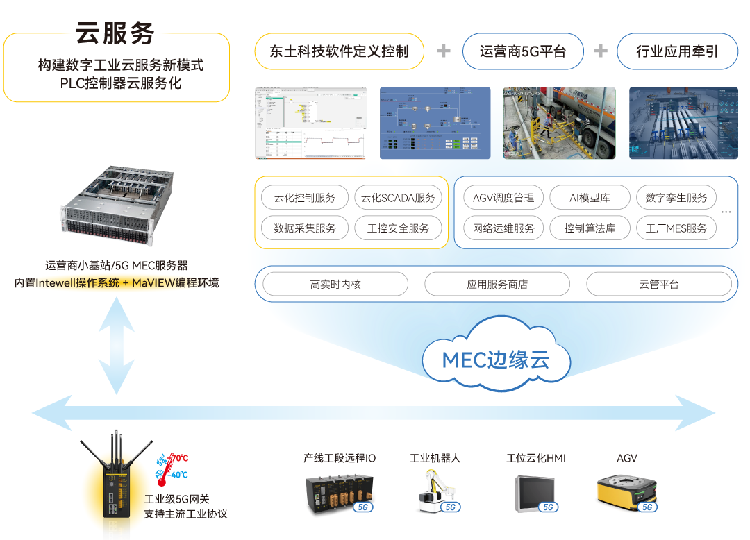 MaVIEW與5G技術結合,將控制器軟件化、云化,控制應用軟件部署在5G MEC云上,打造5G云化控制系統,實現工廠生產設備云化控制,真正實現將5G用于工廠生產控制,構建了數字工業云服務新模式。目前該模式已經在國內某智能工廠5G燈塔項目正在運行。