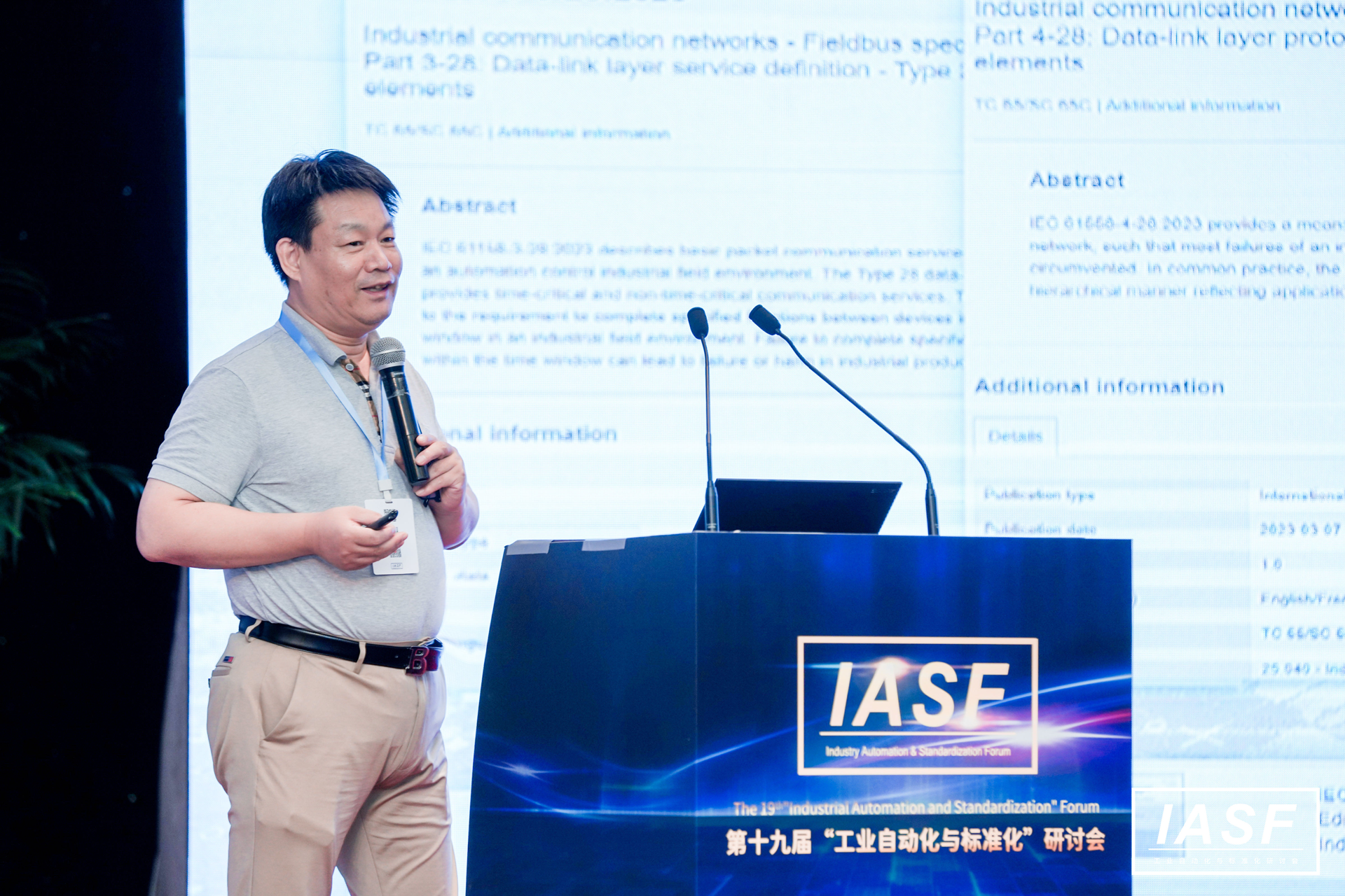 2023年7月20日至21日,由國際電工委員會(IEC)智能制造系統委員會中國專家委員會主辦,機械工業儀器儀表綜合技術經濟研究所承辦的第19屆工業自動化與標準化研討會在京召開。中國儀器儀表行業協會工業網絡總線(AUTBUS)專業委員會籌建組組長、東土科技副董事長兼總工程師薛百華帶隊出席本次會議。