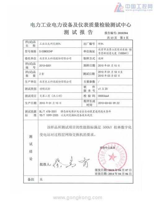 南方電網公司在中國電力科學研究院電力系統動態試驗研究室于2010年01月18日至2010年03月02日開展了500kV桂林數字化變電站二次設備動模試驗,北京東土科技股份有限公司受邀送檢的SICOM3024P產品以優異性能取得了本次動模測試的圓滿成功。