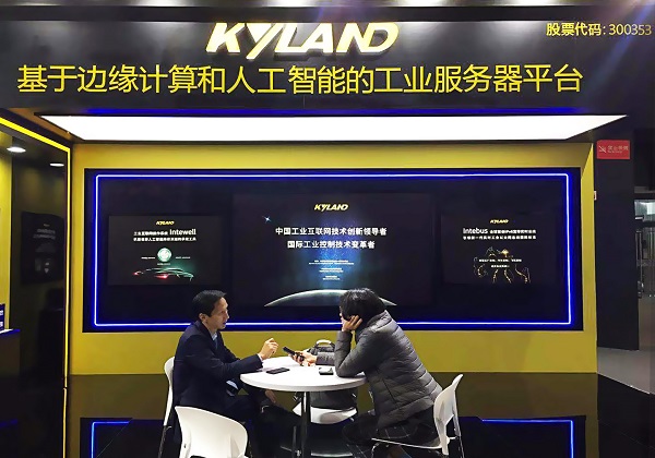 李平在東土科技展臺(tái)接受經(jīng)濟(jì)日?qǐng)?bào)記者采訪(fǎng)