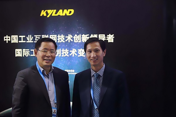東土科技總裁李平與用友董事長(zhǎng)王文京在東土展臺(tái)合影