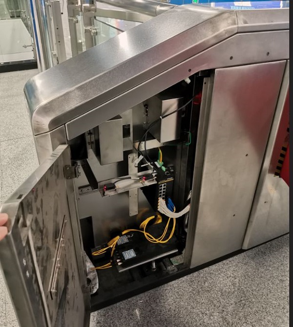 智慧城地鐵站共有A、B、C、D,4個出入口,各出入口分別設置一臺安檢機,每臺安檢機安裝1臺東土公司經(jīng)過多年現(xiàn)場可靠運行實踐檢驗的第一代卡軌式工業(yè)交換機,通過網(wǎng)線與中心機房設置的安檢系統(tǒng)工業(yè)交換機互連,中心核心工業(yè)交換機再通過千兆電口接入到智慧地鐵大平臺。出入口處的安檢機集成了安全及售檢票功能,過安檢的同時,可進行刷臉、刷指靜脈過閘。