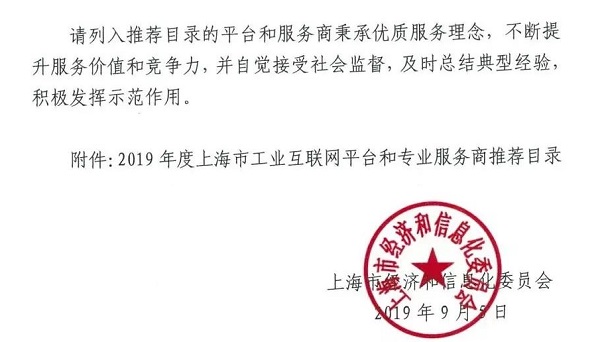 2019年9月,上海市經(jīng)濟(jì)信息化委關(guān)于公布了2019年度上海市工業(yè)互聯(lián)網(wǎng)平臺(tái)和專業(yè)服務(wù)商推薦目錄的通知,共計(jì)46個(gè)平臺(tái)和專業(yè)服務(wù)商列入2019年度上海市工業(yè)互聯(lián)網(wǎng)平臺(tái)和專業(yè)服務(wù)商推薦目錄。