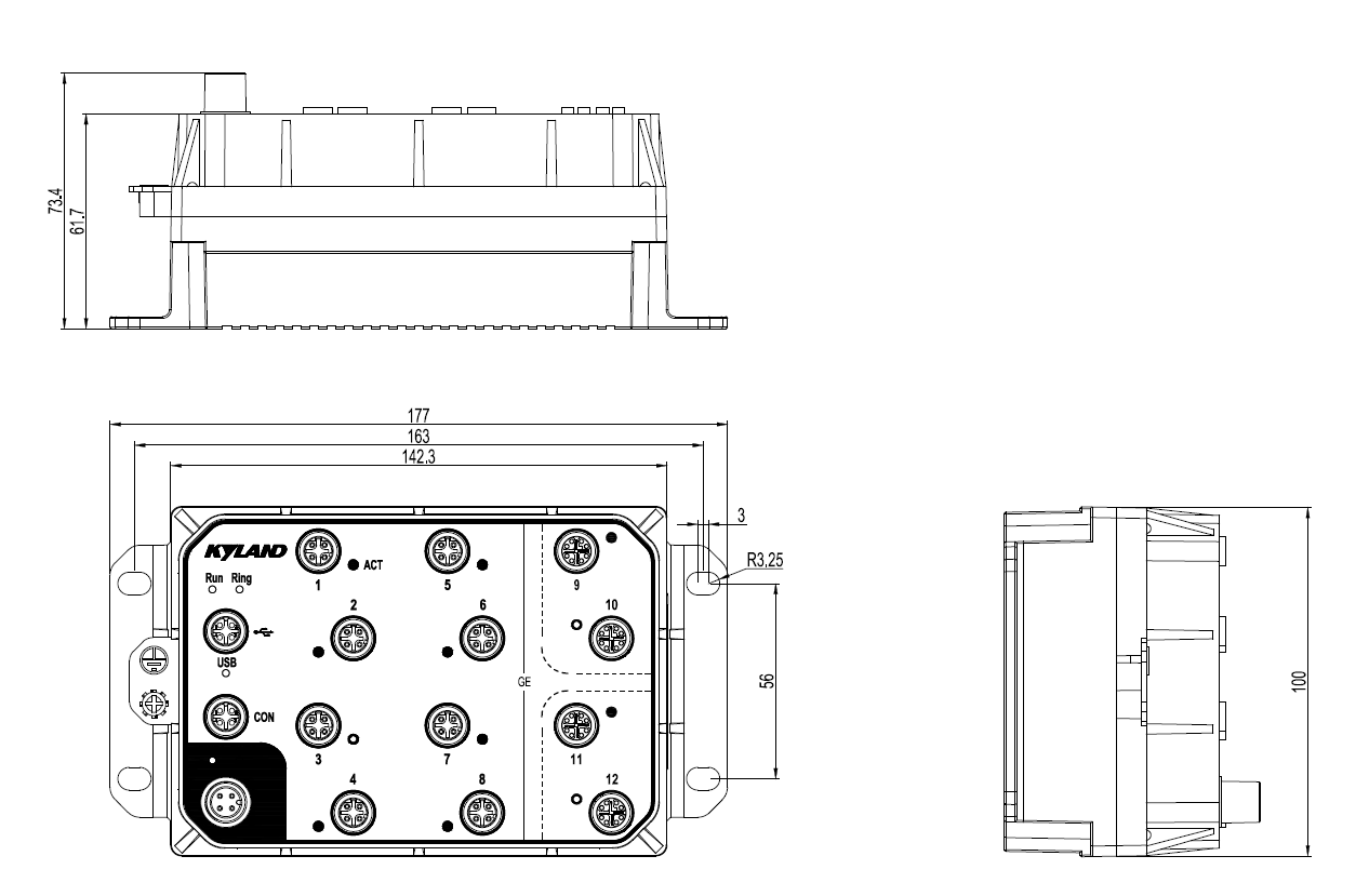 | 接口 | 千兆端口: 10/100/1000Base-T(X) M12 X-Code接口 百兆端口: 10/100Base-T(X) M12 D-Code接口 Console口: RS232 M12 A-Code接口 USB: M12 A-Code接口 |