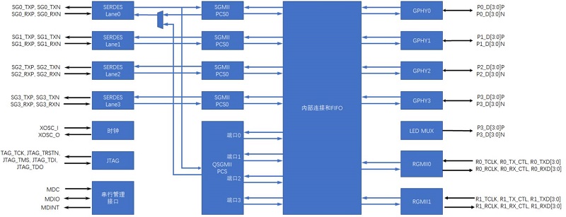 MAC側(cè)支持支持RGMII、SGMII及QSGMII
