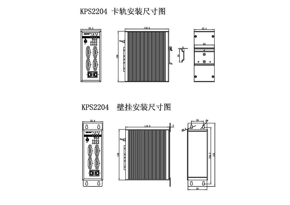 KPS2204支持2個10/100Base-T(X)以太網接口和4路RS232/RS422/RS485串行數據接口. 18-36 VDC或36-72 VDC冗余電源輸入. DIN卡軌式和壁掛式兩種安裝方式. IP40防護等級. 支持Telnet,WEB管理方式. 電源輸入端過流,過壓及EMC防護,以太網RJ45接口和RS232/RS422/RS485串行數據接口優良的EMC防護性能,使得KPS2204能夠適應嚴酷而危險的工業環境.