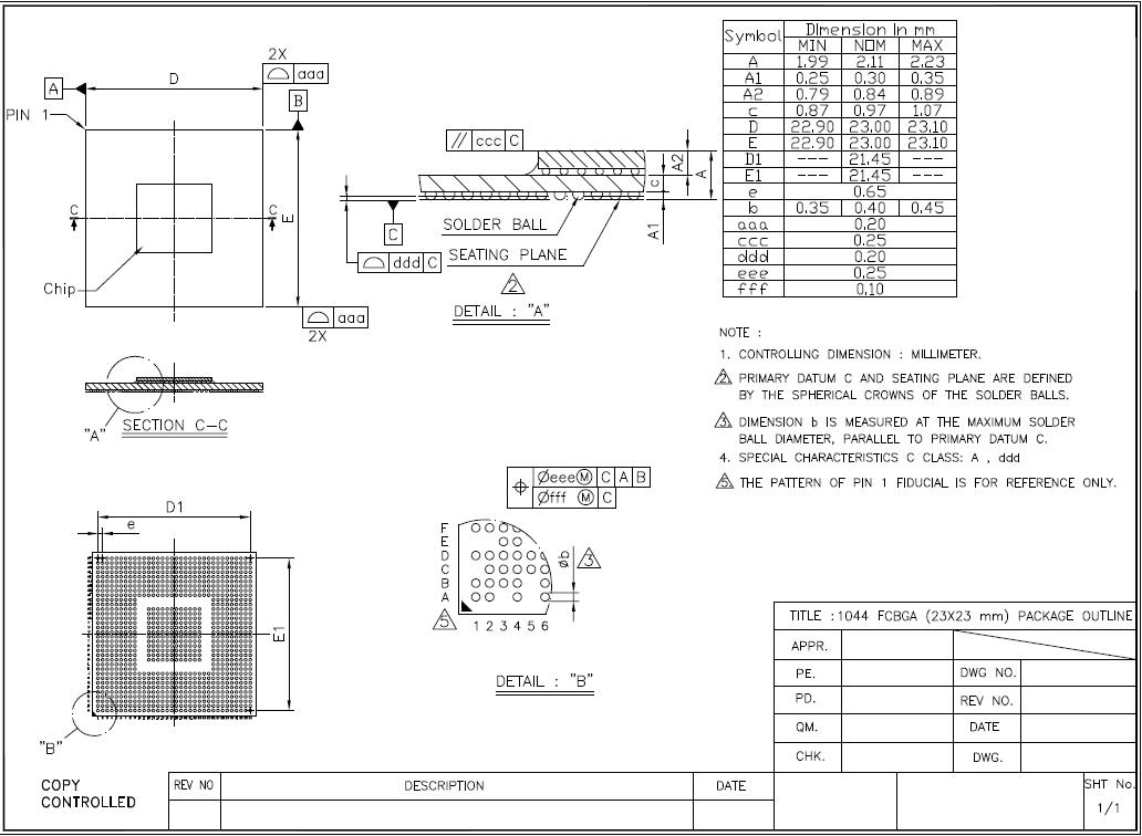 FLBGA, 23mm x 23mm, 0.65-pitch