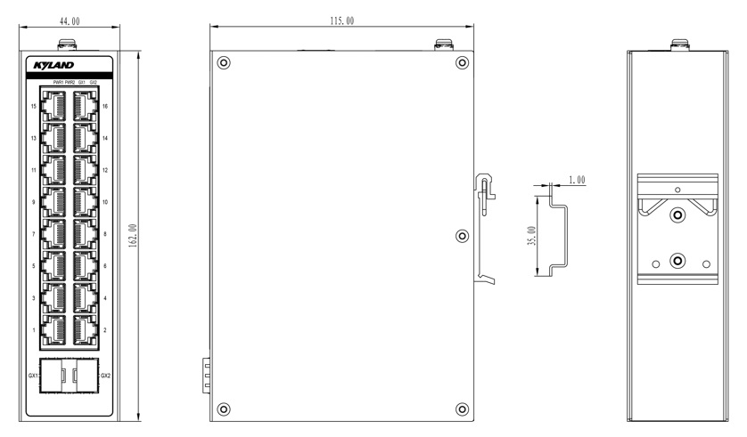 16+2G端口非網管型卡軌式交換機