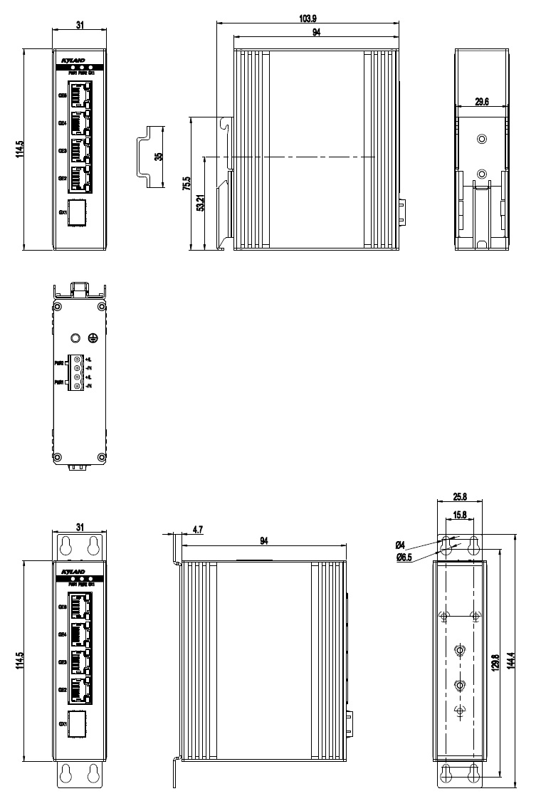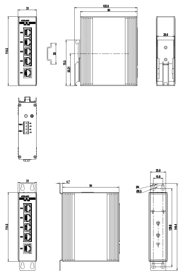 | 機(jī)械結(jié)構(gòu) | 外殼 金屬材質(zhì) 散熱方式 自然冷卻,無(wú)風(fēng)扇 防護(hù)等級(jí) IP40 尺寸 31mm×114.5mm×94mm (W×H×D) 重量 0.3Kg 安裝方式 DIN卡軌式或壁掛式 |