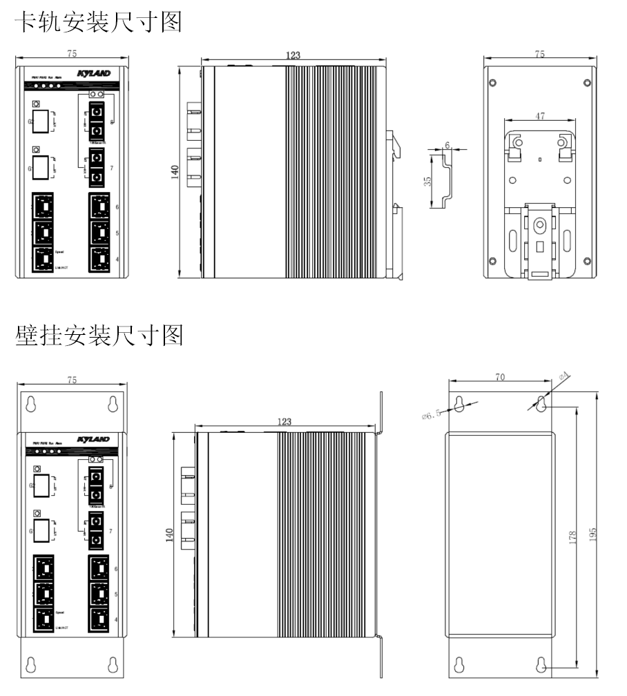 2M6T=2×100Base-FX,多模光口;6×10/100Base-T(X) RJ45電口
