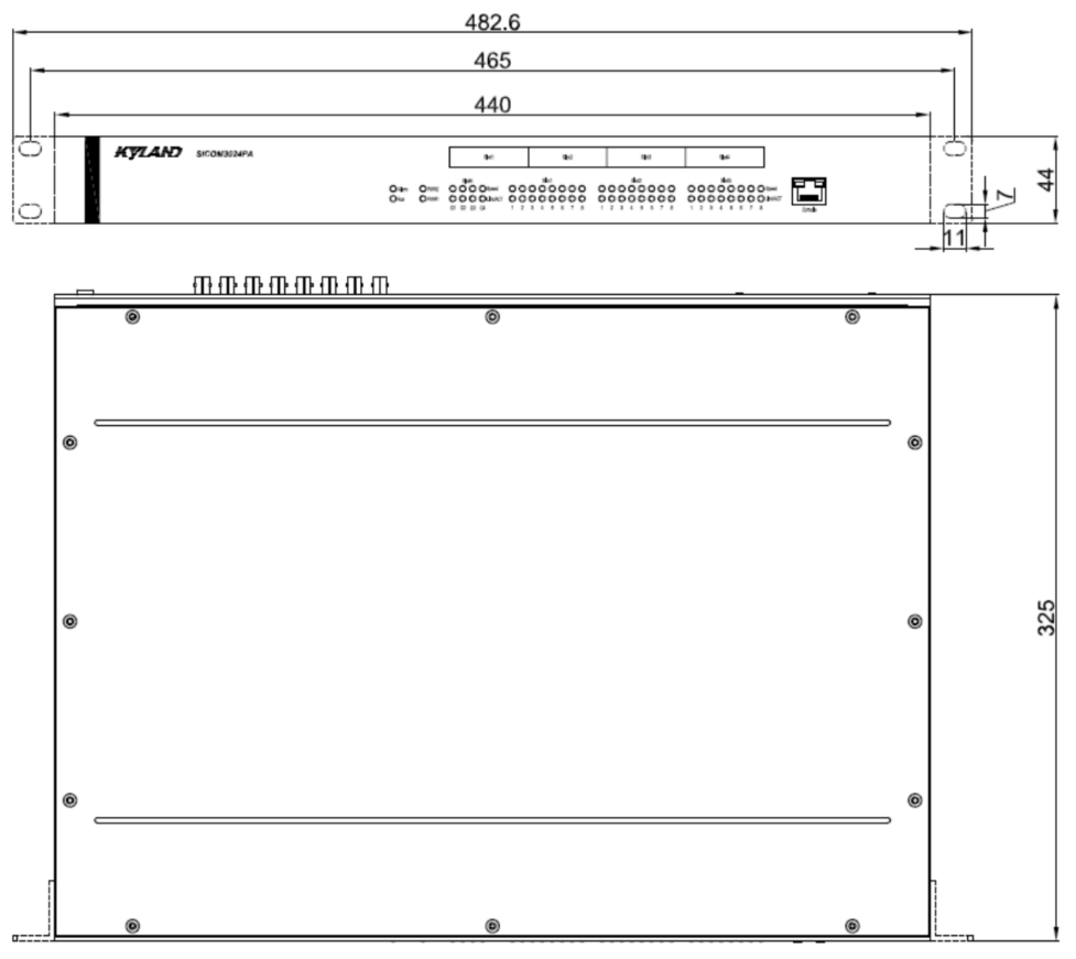 | 機械結構 | 外殼 金屬材質 散熱方式 自然冷卻,無風扇 防護等級 IP40 尺寸 482.6mm×44mm×325mm(W×H×D) 重量 <6.5Kg 安裝方式 19英寸1U機架式 |