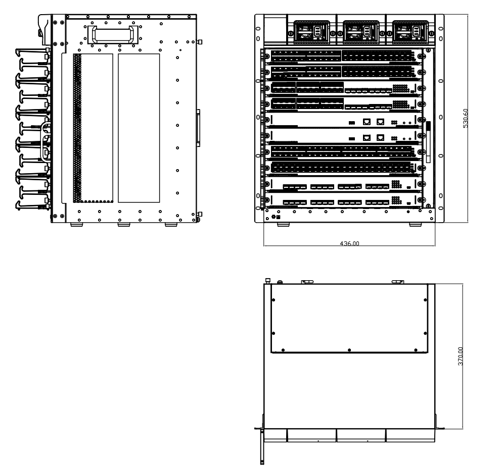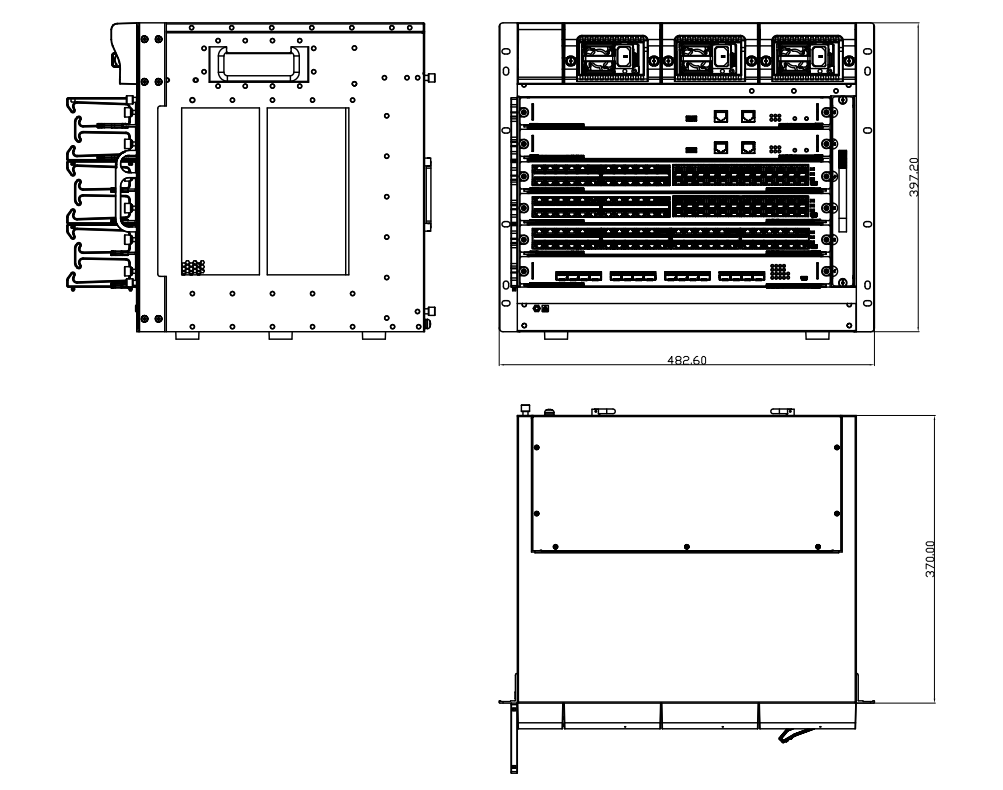 | 電源 | AC:100V-240V,50Hz±10% DC:48V 電源槽位:3 機箱尺寸(W × D × H mm): SICOM6896G-S-1BS:482×377×178,4U SICOM6896G-S-4BS:482×370×397,9U SICOM6896G-S-8BS:482×370×530,12U 整機重量(空配): SICOM6896G-S-1BS:10.5kg SICOM6896G-S-4BS:21kg SICOM6896G-S-8BS:25.5Kg |